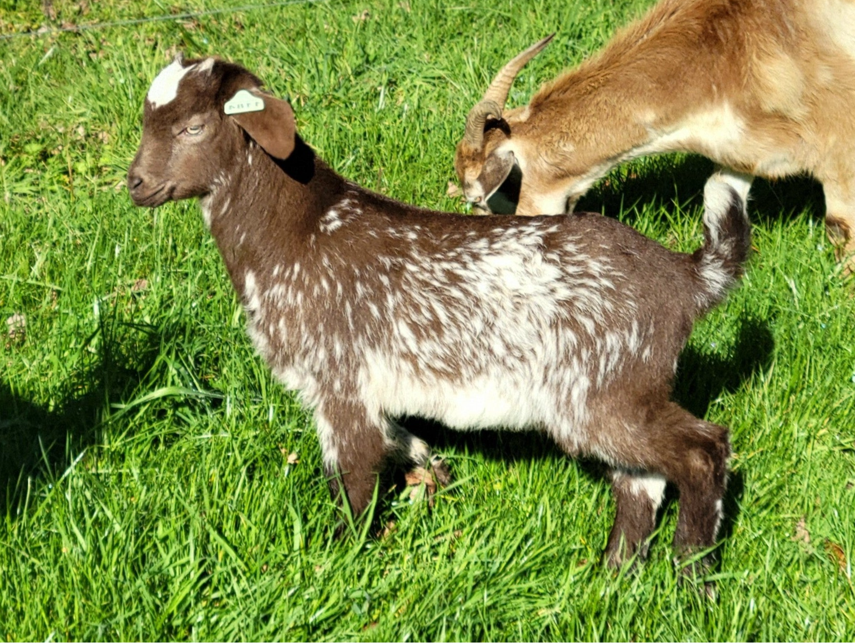 Phantom has been my image of perfection since the day she was born, and my admiration for her hasn't waivered. I cannot pick out a single flaw on this doeling. The only thing she has yet to prove, is that she can rear kids of her own. I'm taking a big chance on these two, both in their first year of production, but I'm ridiculously excited to see the results. These kids, due 3/19/26, will be eligible for NKR registration as 100% NZ.