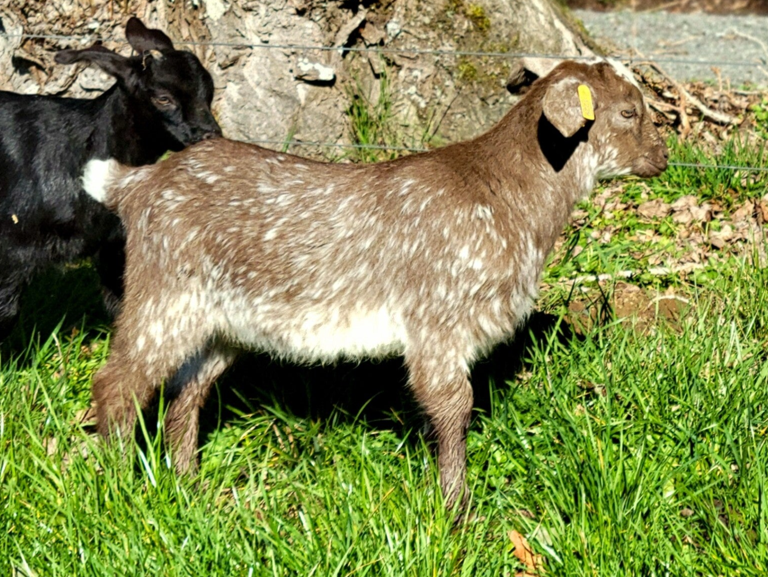 Lenore has been a very productive doe for her breeder at Lookout Point Ranch, where she lived a zero input, no-maintenance lifestyle. She came to me lean and wild-eyed, and in a matter of 2 weeks, had packed on 30 lbs on nothing more than fall pasture. These kids will be easy-keepers and no nonsense, and will have a little added bulk from their daddy. Due 4/6/25 and will be eligible for purebred registration w/NKR.