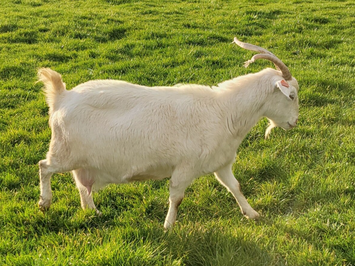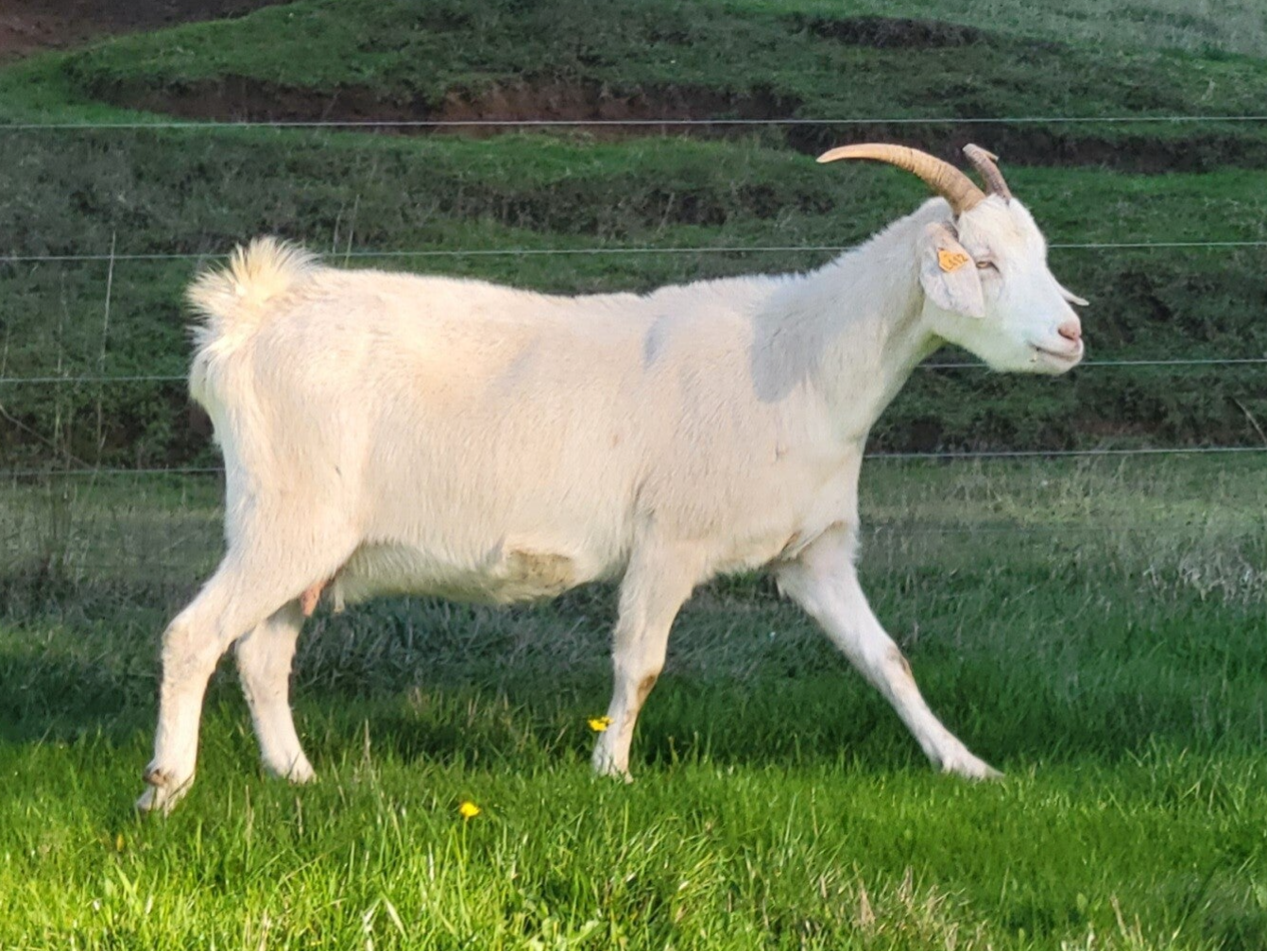 Senior doe Gracie is a bruit! At 175 lbs, she's one of the biggest kiko does you'll come across. Despite her age, Gracie has years of production ahead of her; coming from a breeder who's goats regularly produce healthy kids into their teens. Productive longevity is something we shouldn't lose sight of in the kiko breed... Gracie is an asset to my program and the breed standard. I'm excited to pair her up with Brass Tacks this fall for January '25 kids.