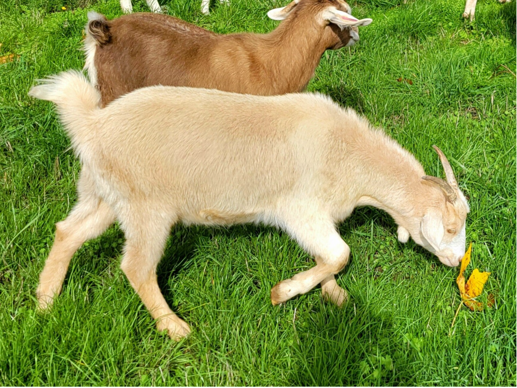 I took an immediate liking to Friday the moment she was born, and she's continued to grow and mature into an elegant, graceful young lady. Friday's dam has had the best parasite resistance of any goat to set foot on the farm and never had a total egg count higher than 11 (that's right, eleven eggs total) on any FEC. At her young age, I have yet to run a FEC on Friday, but her beet red FAMACHA has never wavered. Friday's sire, Red Fox, is also remarkably resilient in any setting. Friday has passed on the legacy of both her sire and dam by having stellar twins, a buck & doeling, sired by Brass Tacks in 2025.